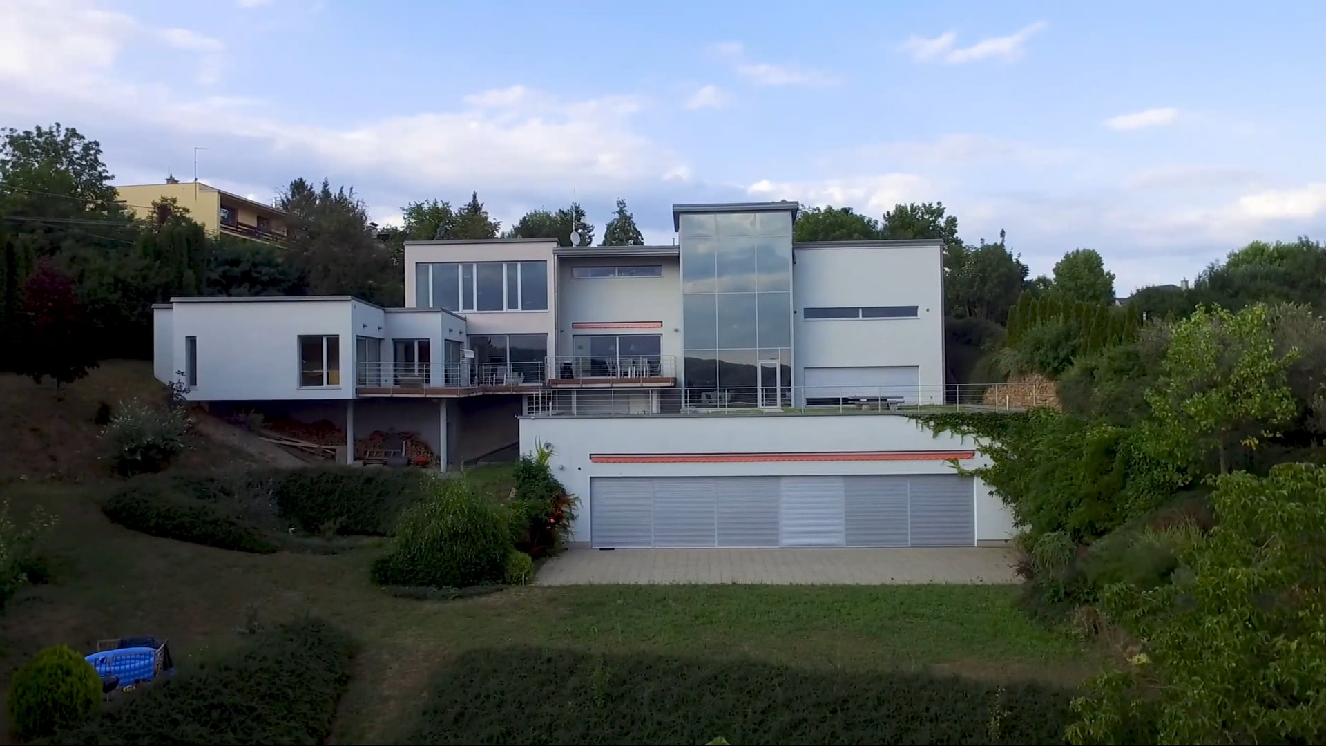 This well-equipped timeless villa with an indoor swimming pool, elevator, office space, and a large southwest-facing garden with beautiful views of the surrounding forests is located in a village near the Brno dam, which is easily accessible by car, bus, or on foot.