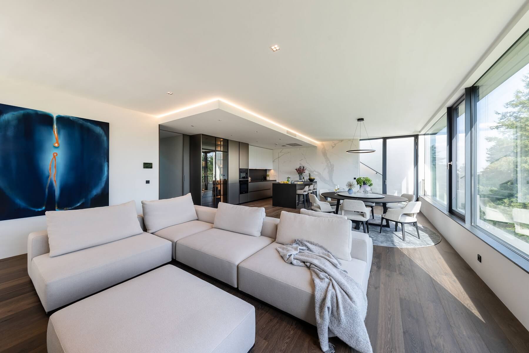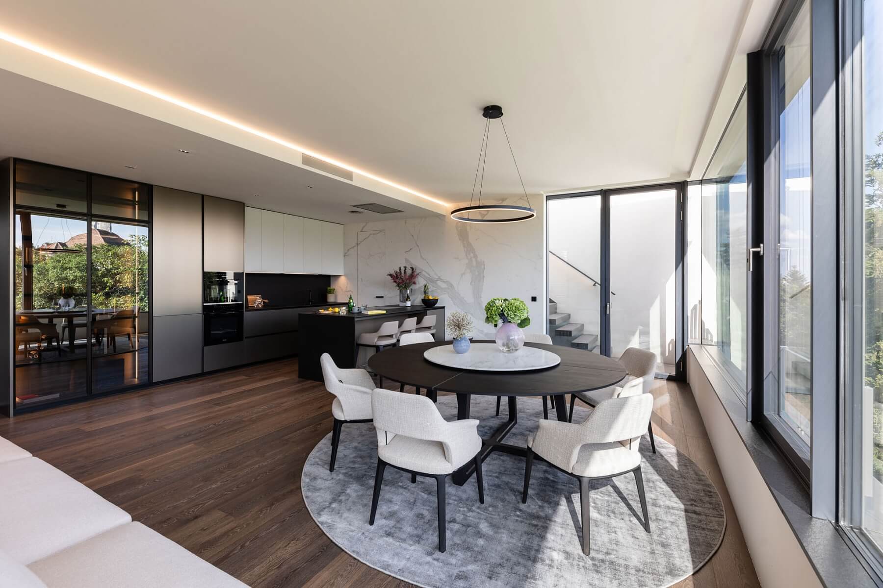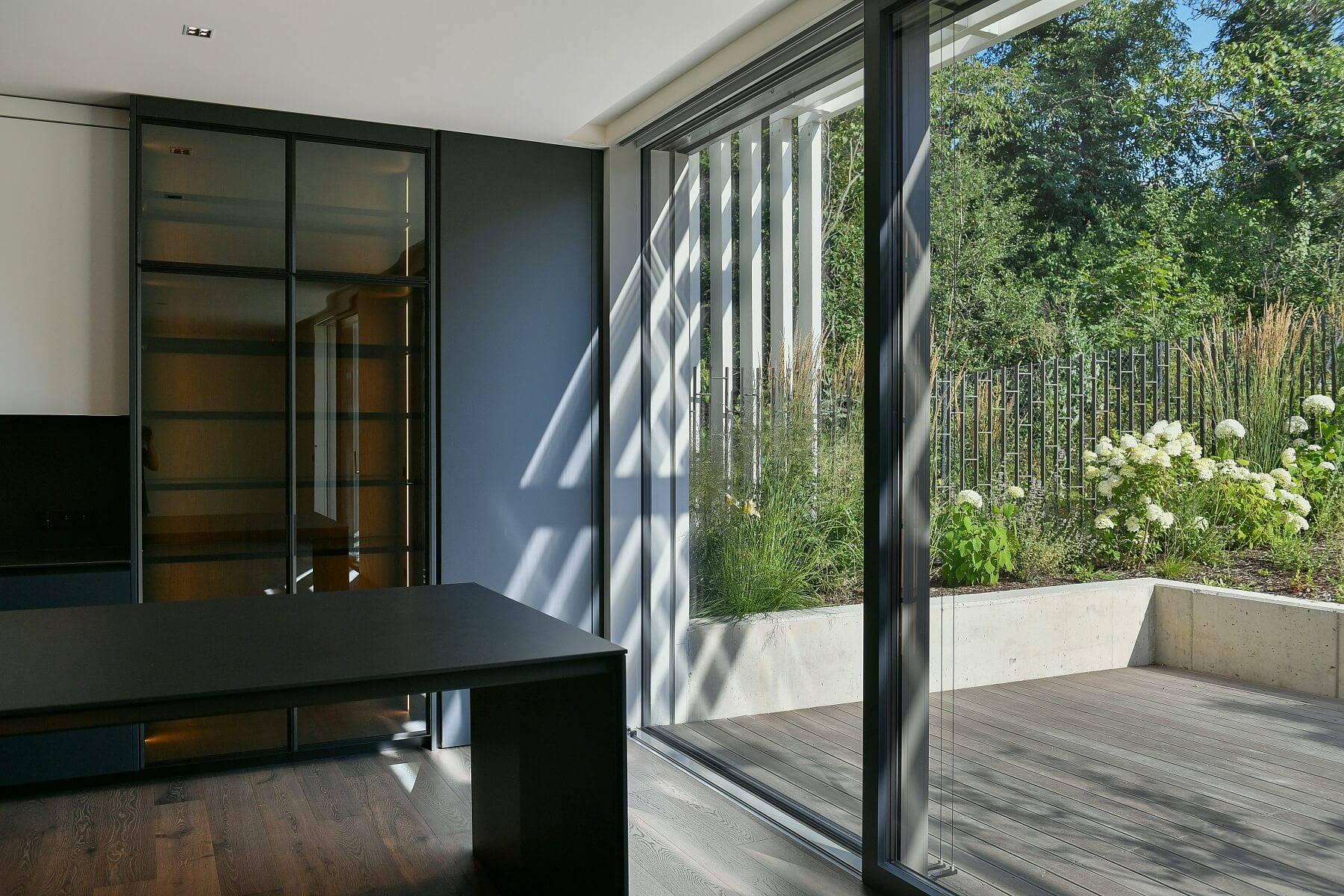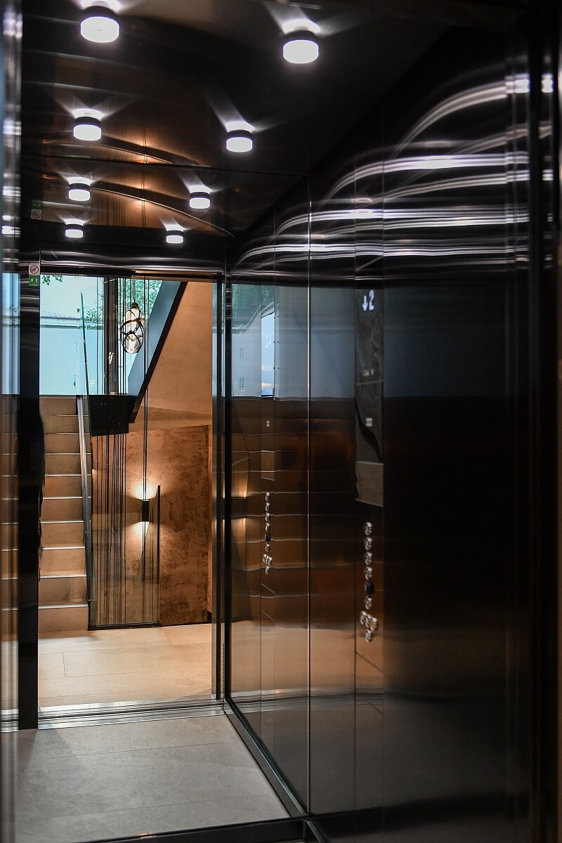 Každé z pěti pater nadčasové vily obsadil samostatný velkorysý byt s dispozicemi od 3+kk po 5+kk a výměrou od 100 m2 po 216 m2. Design interiérů je laděný do tlumených přírodních barev za použití nejkvalitnějších materiálů podtrhujích luxus a důraz na detail. Italské designové kuchyně Poliform jsou vybaveny spotřebiči nejvyšší řady značky Miele, efektivní věstavěný nábytek a úložný systém rovněž od Poliformu vytvářejí harmonický funkční interiér, koupelny jsou vybaveny značkovou sanitou a bateriemi Axor z leštěného černého chromu. Vysoký standard dále zahrnuje třívrstvé dřevěné podlahy, velkoformátové obklady a dlažby italského výrobce Italgraniti, 2,4m vysoké bezfalcové interiérové dveře, dřevo-hliníková okna Josko s izolačními trojskly a venkovními žaluziemi a vstupní bezpečnostní dveře.
